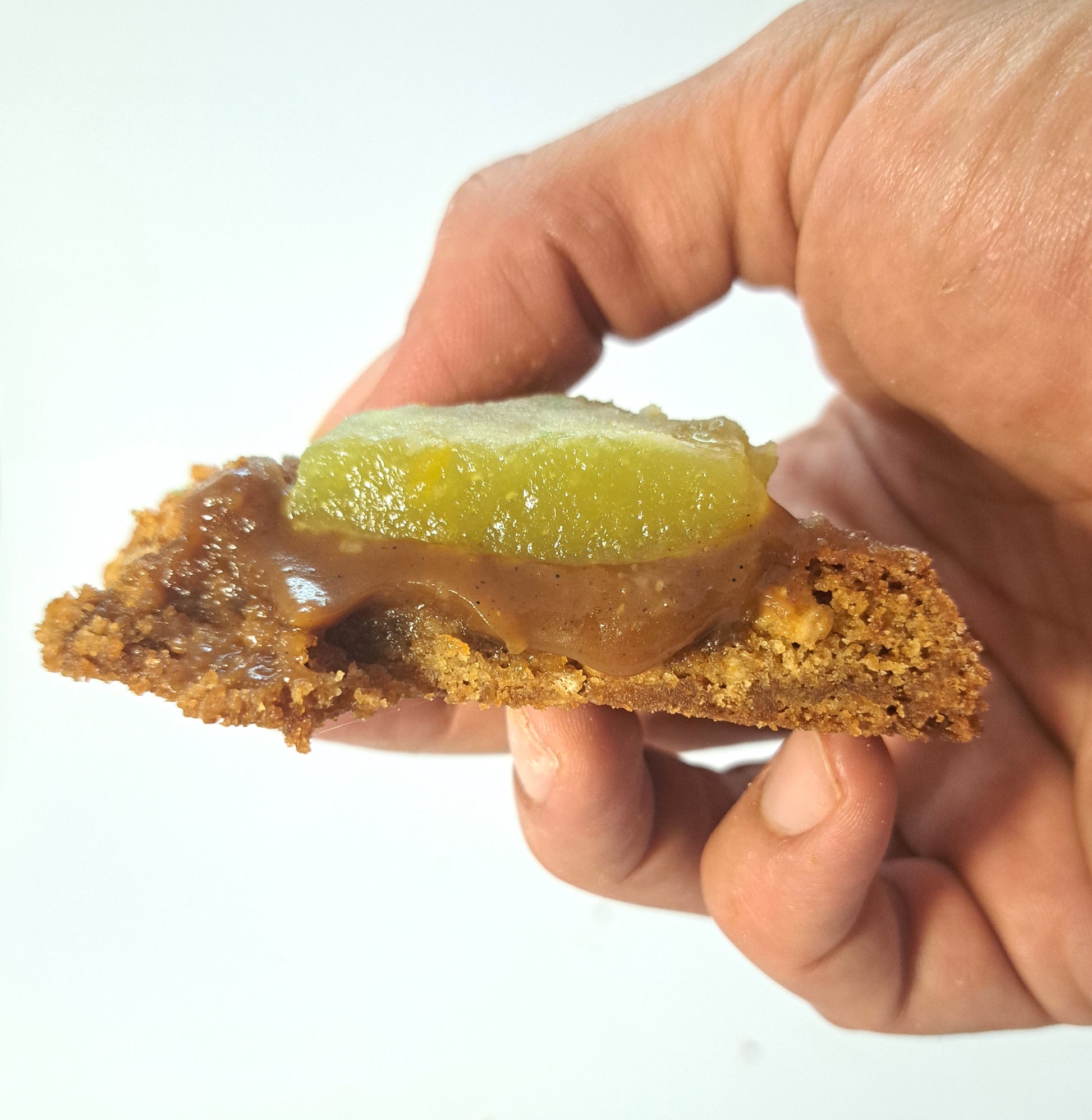 Introducing the OldJoy 72-hour brown-butter cookie dough stuffed with a creamy miso butterscotch and topped with Apricot Turkish delight. This cookie comes in strong with sweet, salty, funky and nutty flavours and nails all the textures with crunchy, chewy, creamy and jammy.